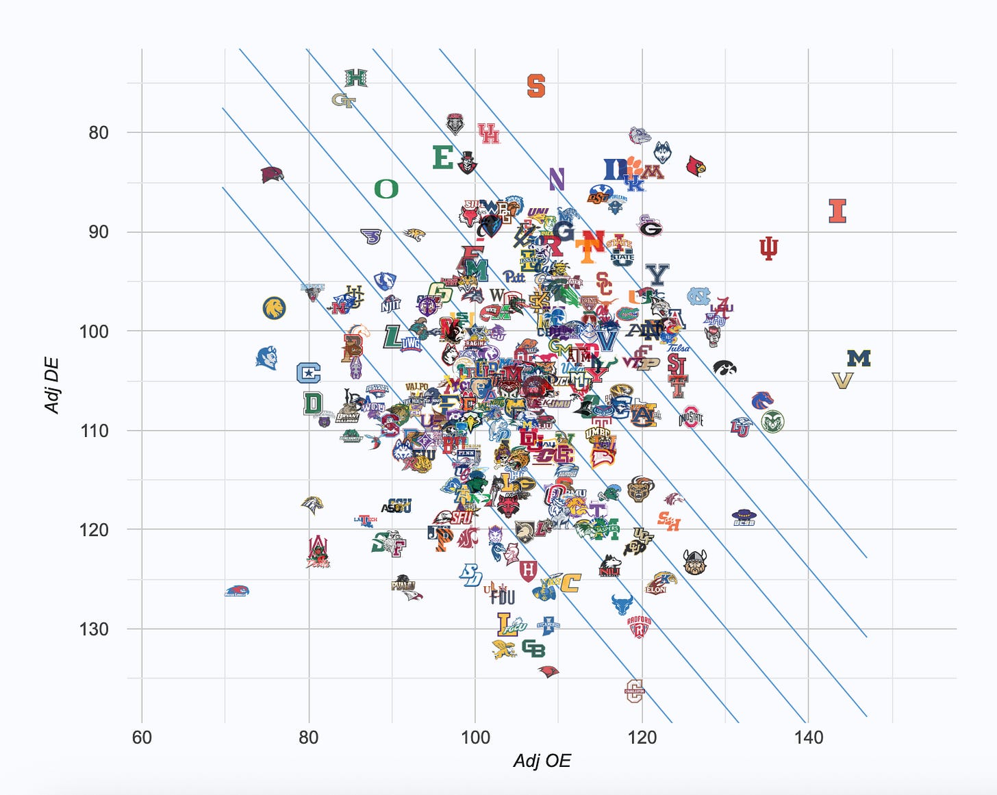 If your teams logo is anywhere to the right of the last blue line pictured in the graphic above, you’re allowed to smile, things looked very promising this week. The reason I love Torvik data is it’s not some sort of facade, it’s really never too early to draw some light conclusions.
